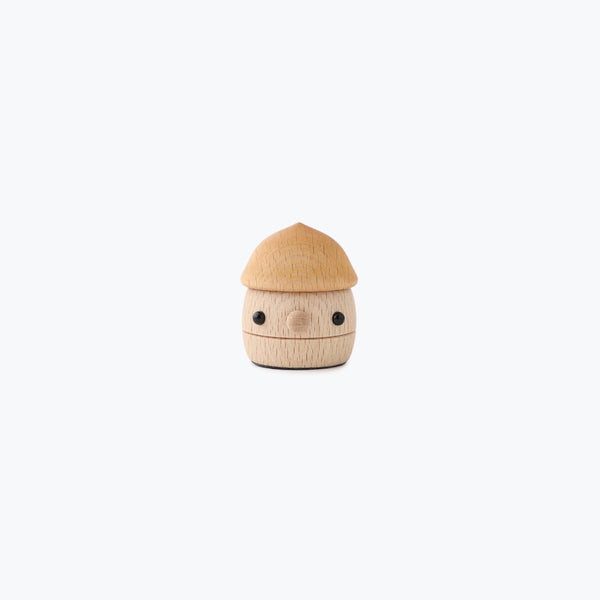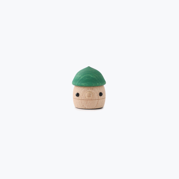 坂道を可愛らしく歩くどんぐり帽子の木のおもちゃの