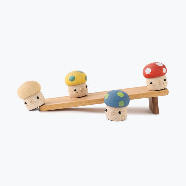 きのこ帽子の形状はお子様の手になじむような柔らかなフォルムに なっています。 どんぐりきのこは、通常タイプのどんぐりよりも少し頭が重たいので
