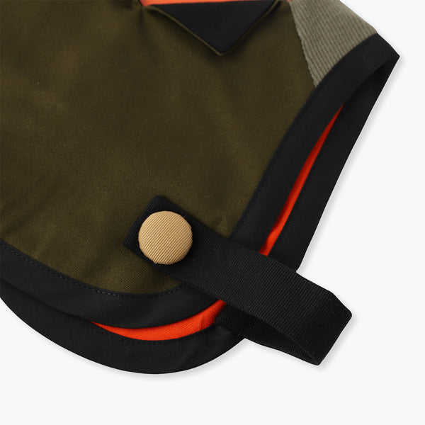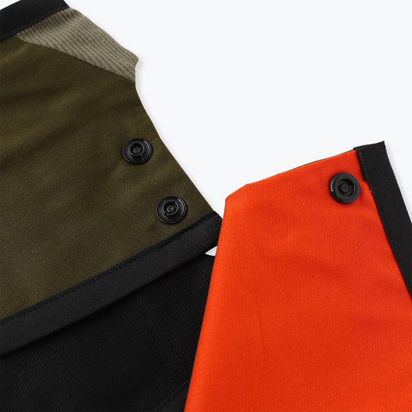 着脱は首元後ろのワンボタンでカンタン。首回りは2段階調整可能。