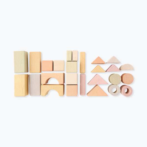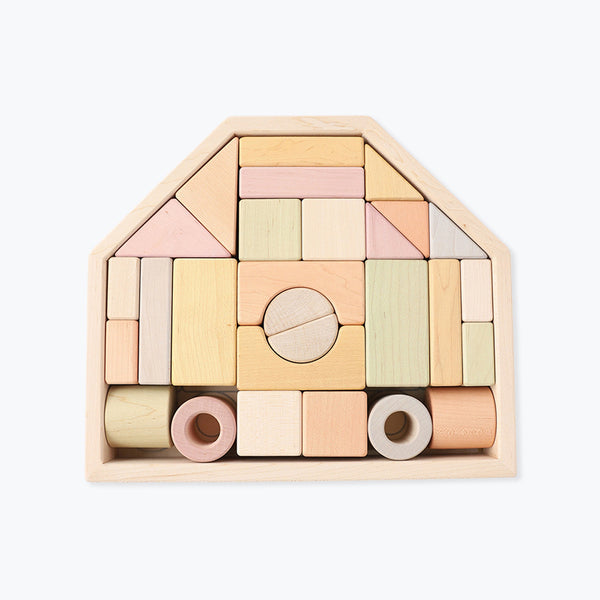 「塗装されたつみき」と「白木のつみき」のセットです。