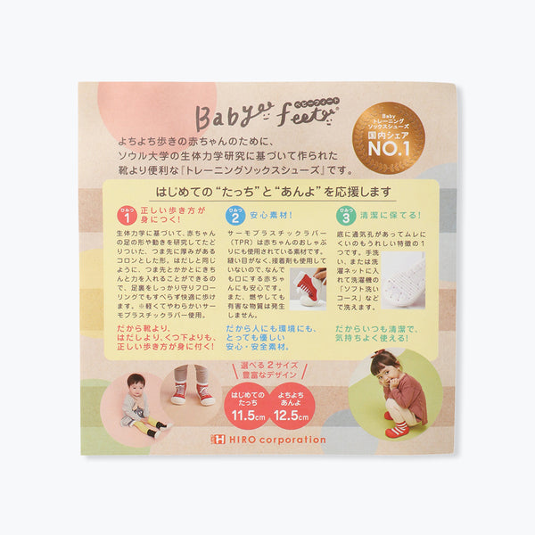 赤ちゃんの足の形や動きを研究して作られた安心設計。