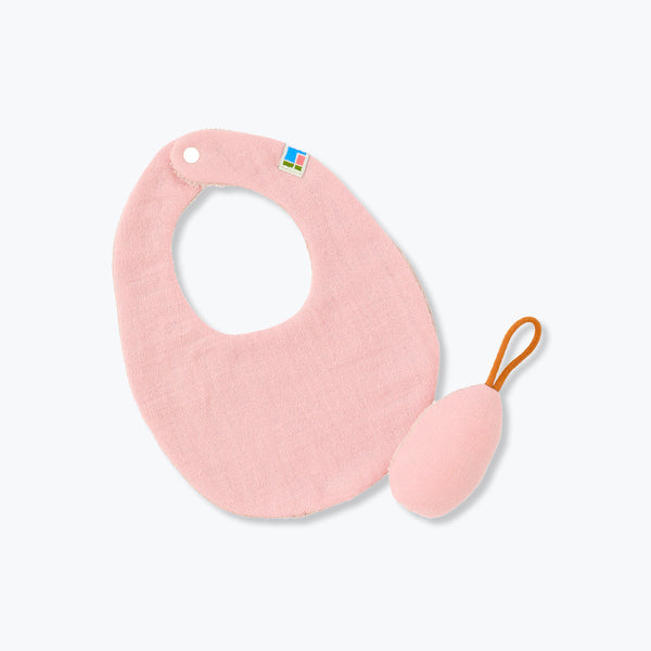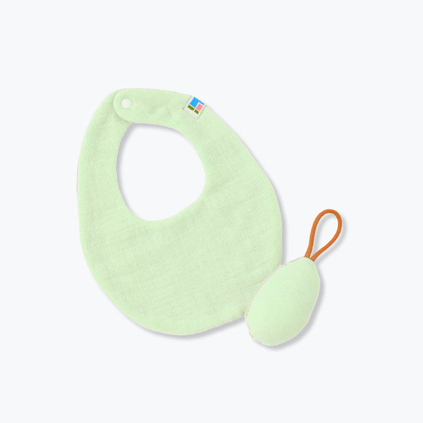 タオル地で作られたスタイとおもちゃです。