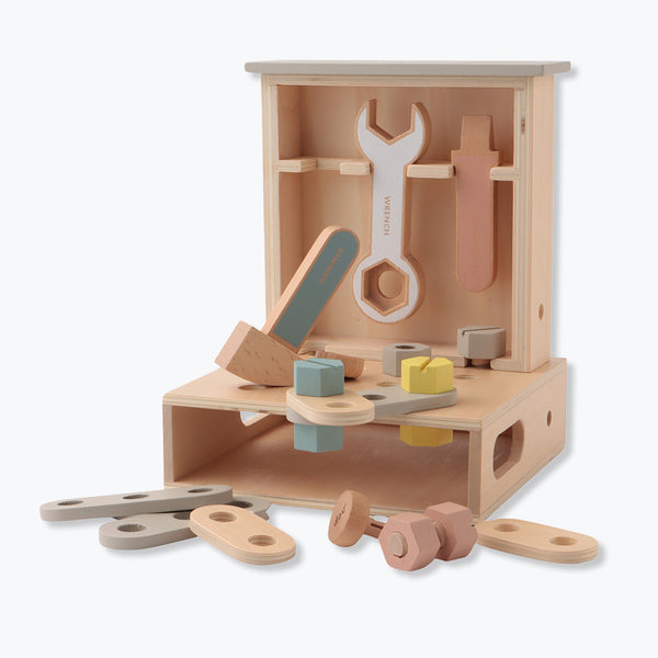 "TOOL BOX"の引き出しを開けて中のツールを取り出すというシーンも、想像力や創造力、手先の発達を促進することで、こどもたちの成長をサポートします。