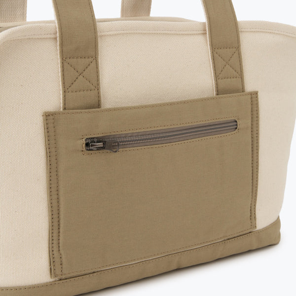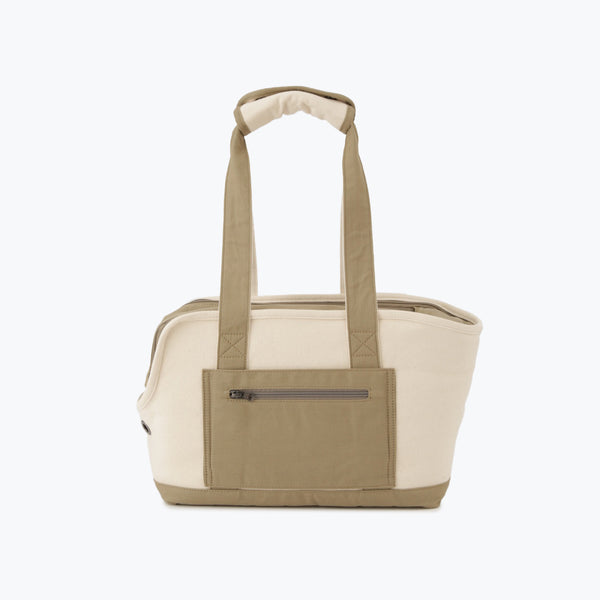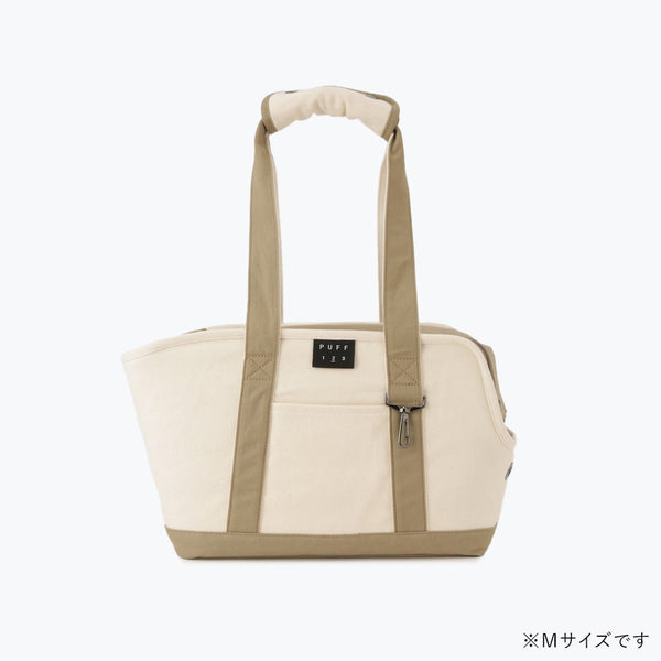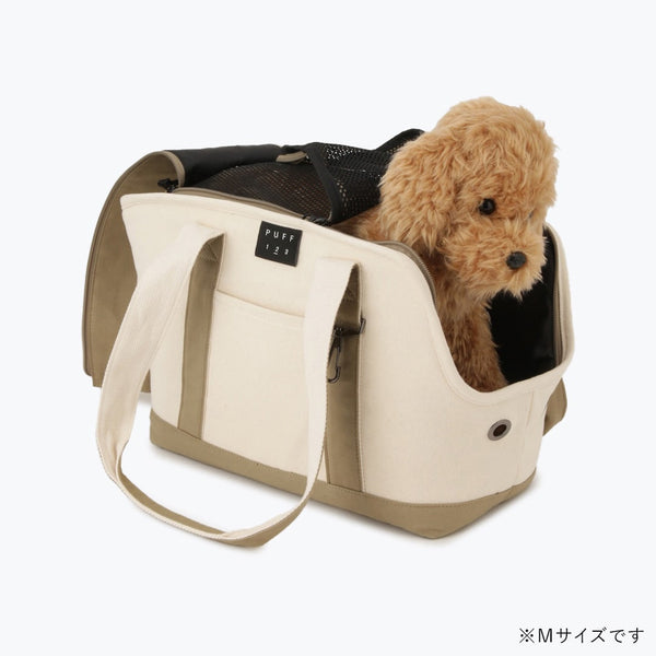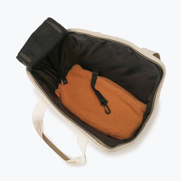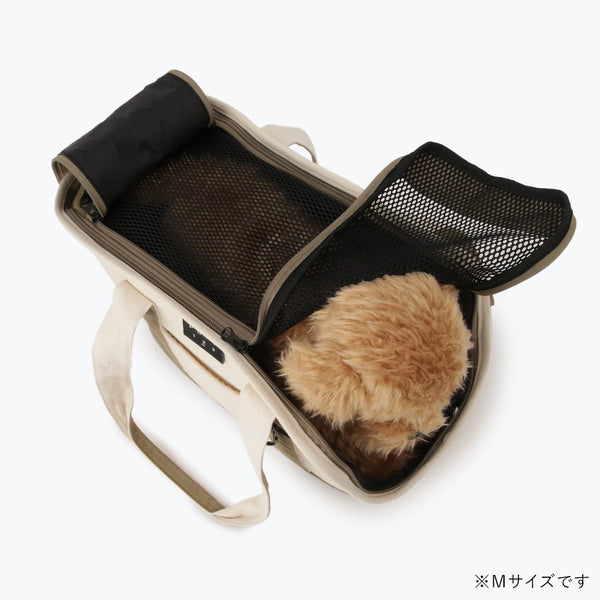 ナチュラル素材でおしゃれに持ち歩ける、トート型ペットキャリーバッグ。