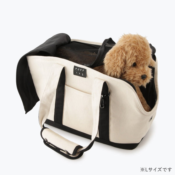 ナチュラル素材でおしゃれに持ち歩ける、トート型ペットキャリーバッグ。