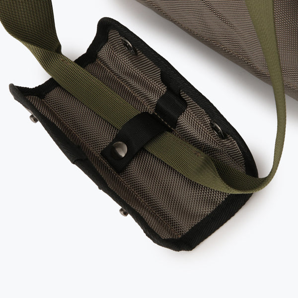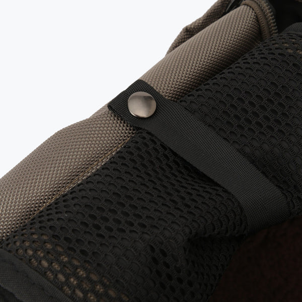 2枚目のメッシュフラップはくるくると巻いて内側から出ているテープで外側のスナップで留める事ができます。