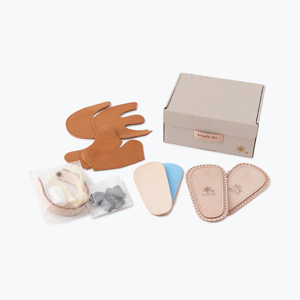 針穴を拾って縫うだけで靴が出来上がるベビー用シューズキット。